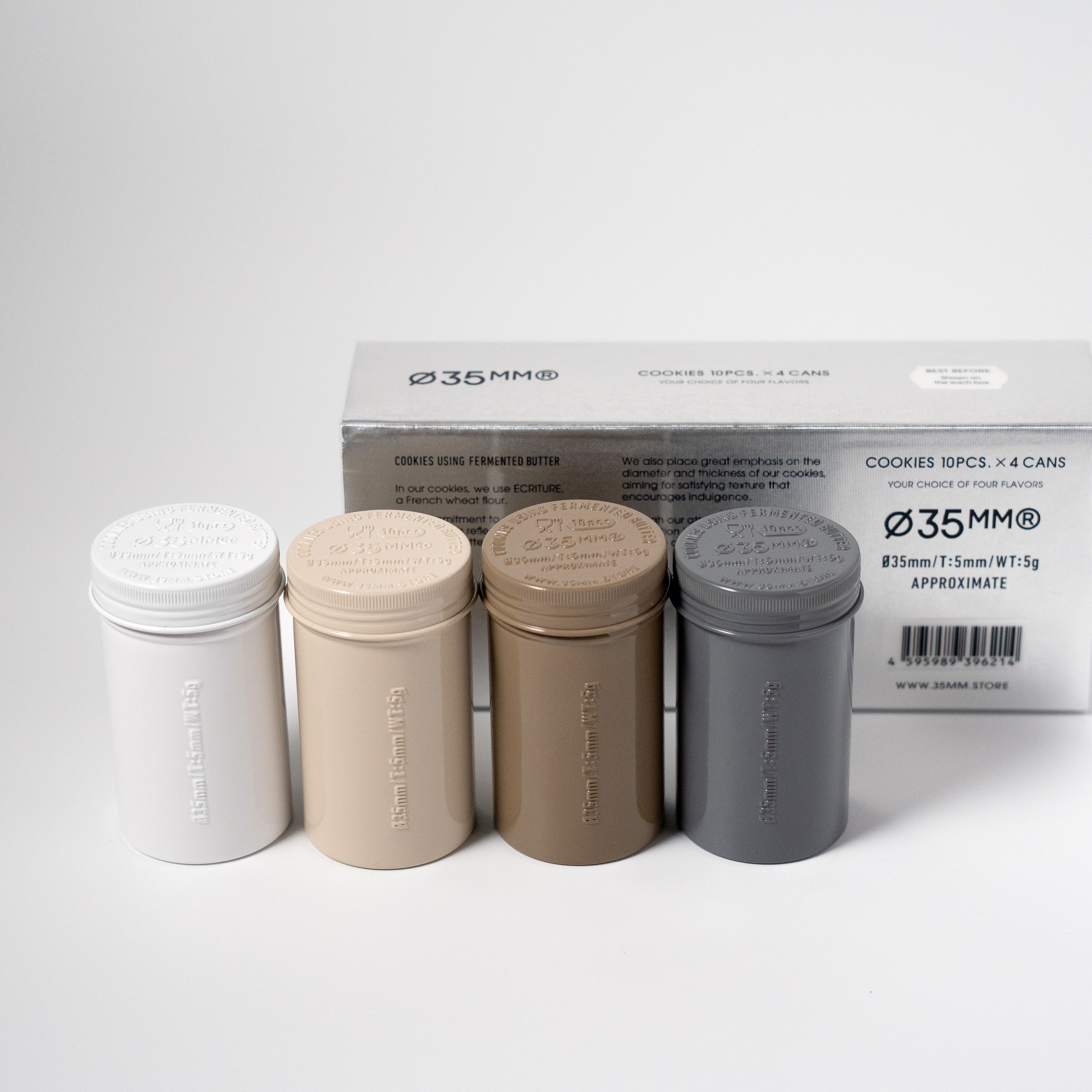 プレーン、アールグレイ、チョコレートチップ、BLACK SESAME (LIMITED FLAVOR) のクッキー缶の詰め合わせセット。